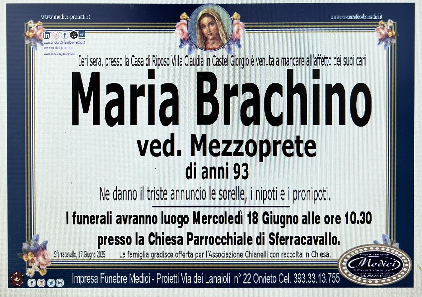 I Funerali avranno luogo Lunedi 16 giugno alle ore 15.30 presso la Cappella della Casa Natività di Maria in Morrano – Orvieto